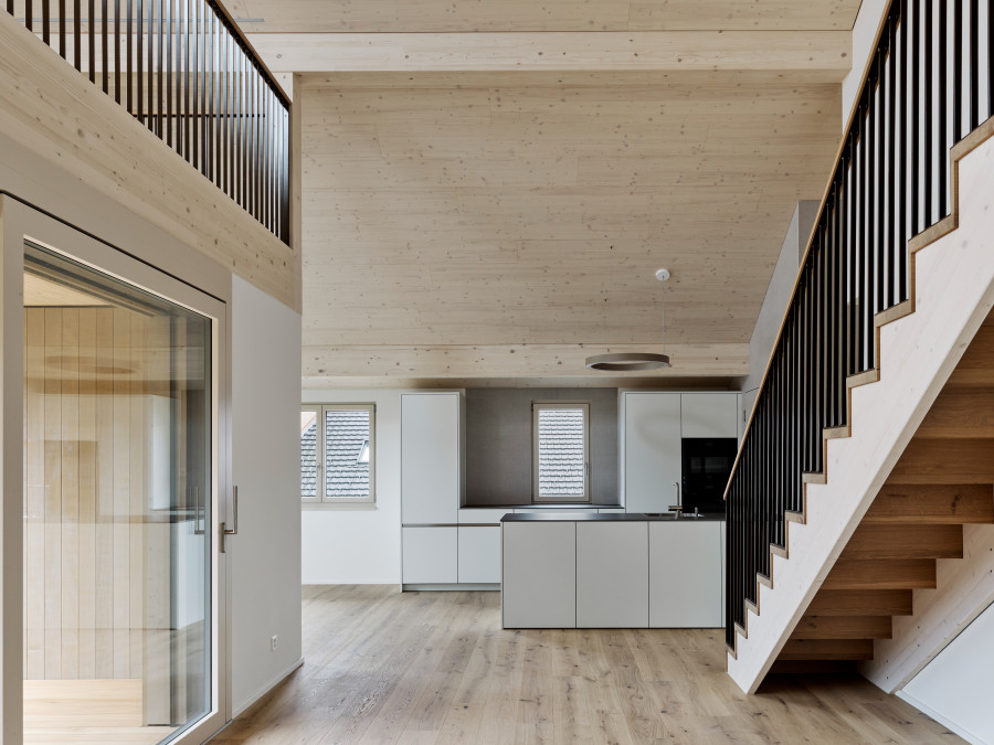 Am Rand des historischen Dorfkerns von Ermensee entsteht ein Ensemble, das ortstypische Strukturen aufnimmt und zeitgenössisch interpretiert. Die Überbauung mit Geschosswohnungen und Reiheneinfamilienhäusern fügt sich ruhig in das gewachsene Umfeld ein und öffnet sich zur umgebenden Landschaft.