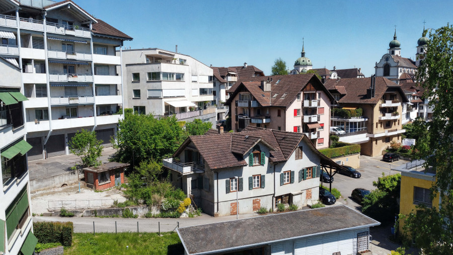 Das Gebäude ergänzt die gewachsene Struktur des Unterdorfs mit einer einfachen, gut proportionierten Figur. Eine ruhig rhythmisierte Lochfassade, präzise Leibungen und zurückhaltende Details halten den Massstab auf Augenhöhe und lassen den Baukörper selbstverständlich zwischen seinen Nachbarn stehen. Die Erschliessung ist kurz gehalten, Adressen sind klar lesbar. Im Inneren sorgen übersichtliche Grundrisse für helle Wohnbereiche mit funktionalen Küchen- und Nasszellenzonen.
