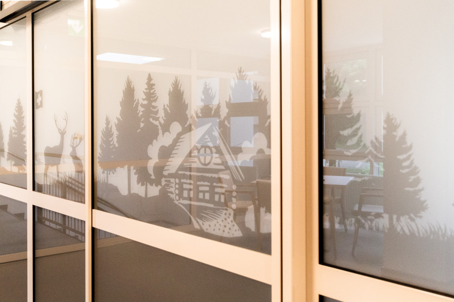 Das dritte Obergeschoss wurde im laufenden Betrieb zur spezialisierten Demenz- und psychogeriatrischen Abteilung umgebaut. Aufenthaltsbereiche wurden entlang der bestehenden Terrassen neu aufgebaut, die Aussenräume und die Fassade instandgesetzt; Ziel war eine funktionale, ruhige Umgebung mit klarer Orientierung.