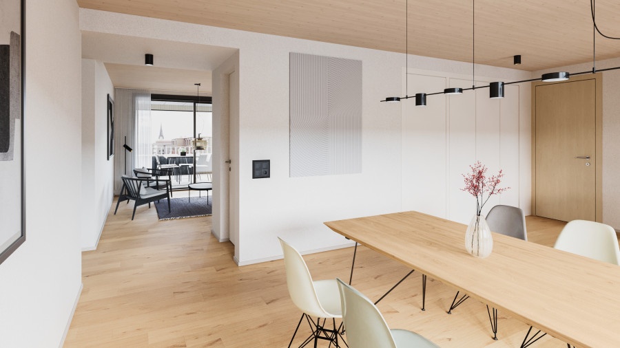 Konstruktiv setzt das Projekt auf einen fünfgeschossigen Holzbau, der im Seetal zu den grösseren zeitgenössischen Holzbauten zählt. Vertikale und horizontale Metallelemente gliedern die dunkle, vorgehängte Holzfassade; im Sockel unterstreichen Deckelschalung und geschliffene Holzbretter den robusten Charakter. Die Versorgung übernimmt eine Grundwasser-Wärmepumpe, flankiert von einer PV-Anlage – mit dem Ziel eines nahezu CO₂-neutralen Betriebs.