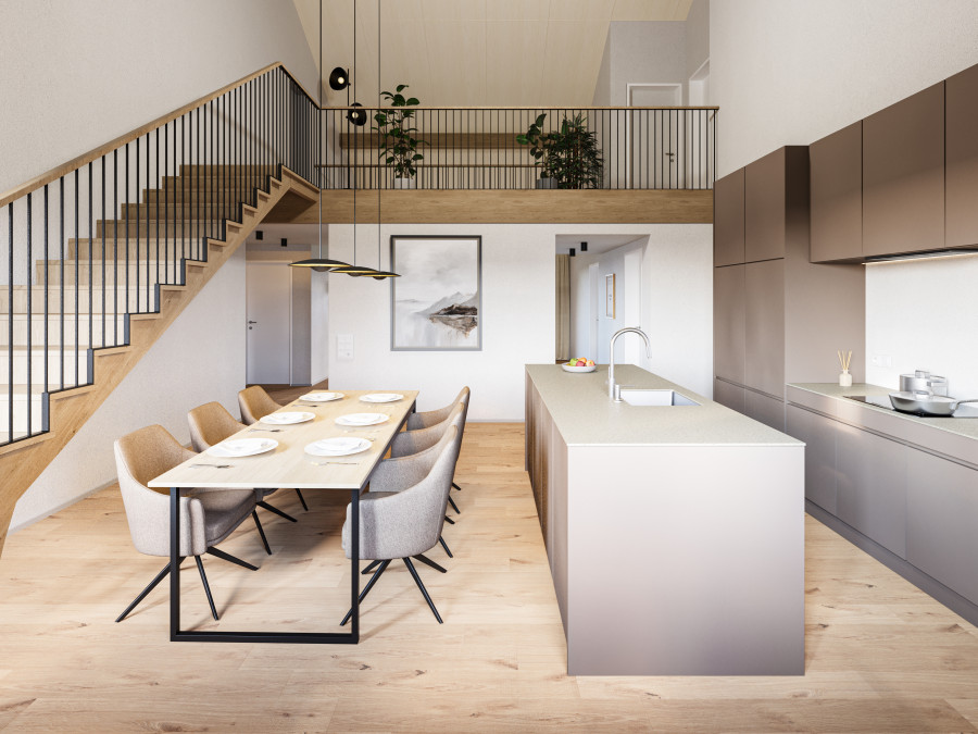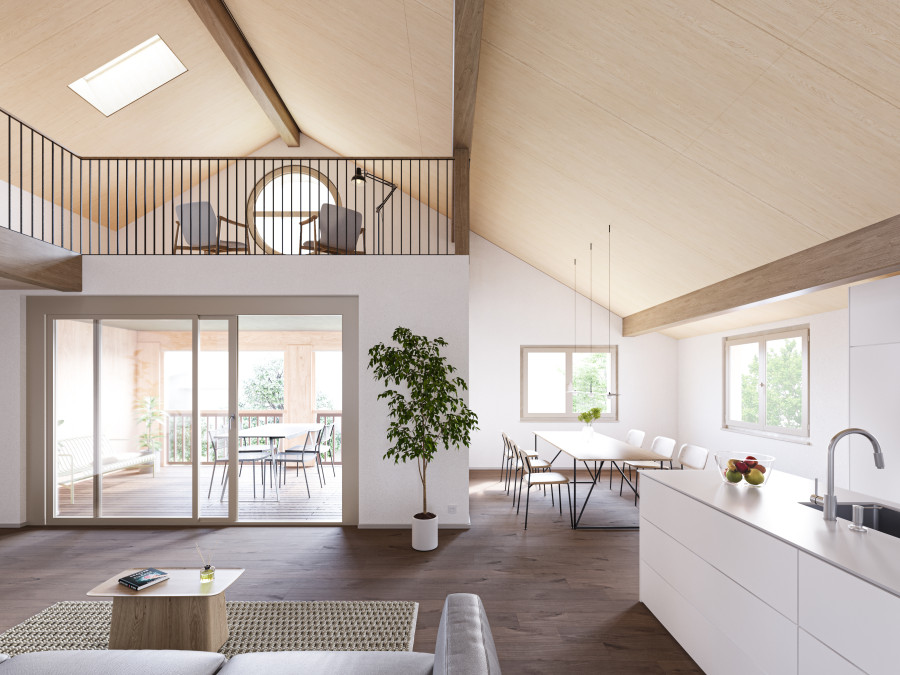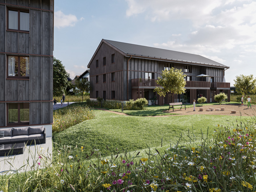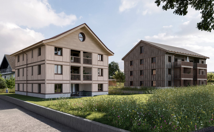 Die Wohnungen sind funktional geschnitten: helle Wohn- und Schlafräume, Küche, zwei Nasszellen sowie ein Balkon oder eine Terrasse mit Blick ins Grün. Damit wird ein klares, alltagstaugliches Angebot für unterschiedliche Haushaltsgrössen geschaffen. Die Reiheneinfamilienhäuser ergänzen dies um mehr Privatheit und direkten Aussenraum.