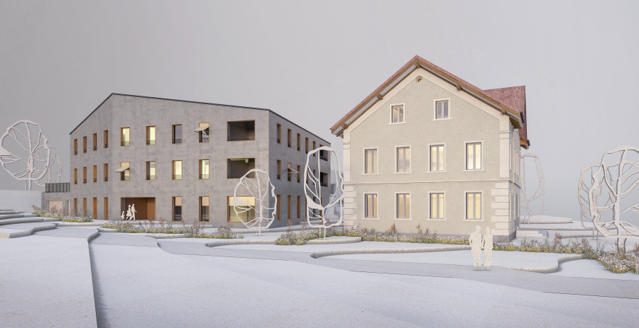 In Summe schlägt der Entwurf einen klaren, nüchternen Weg vor: Der Bestand bleibt Hauptdarsteller, der Neubau stärkt die Adresse, und der Freiraum ordnet das Ganze zu einem Ort, der Verwaltung, Betreuung und Dorfleben gleichermassen trägt.