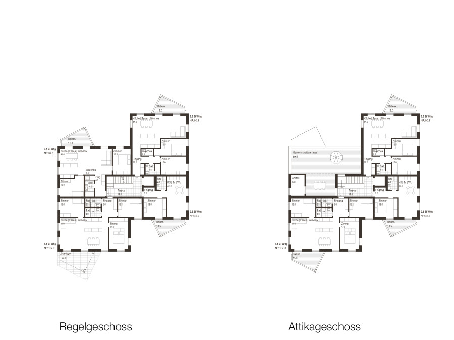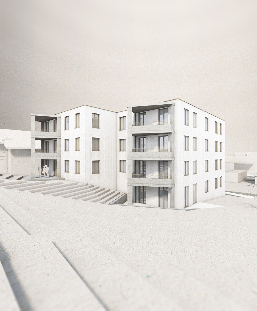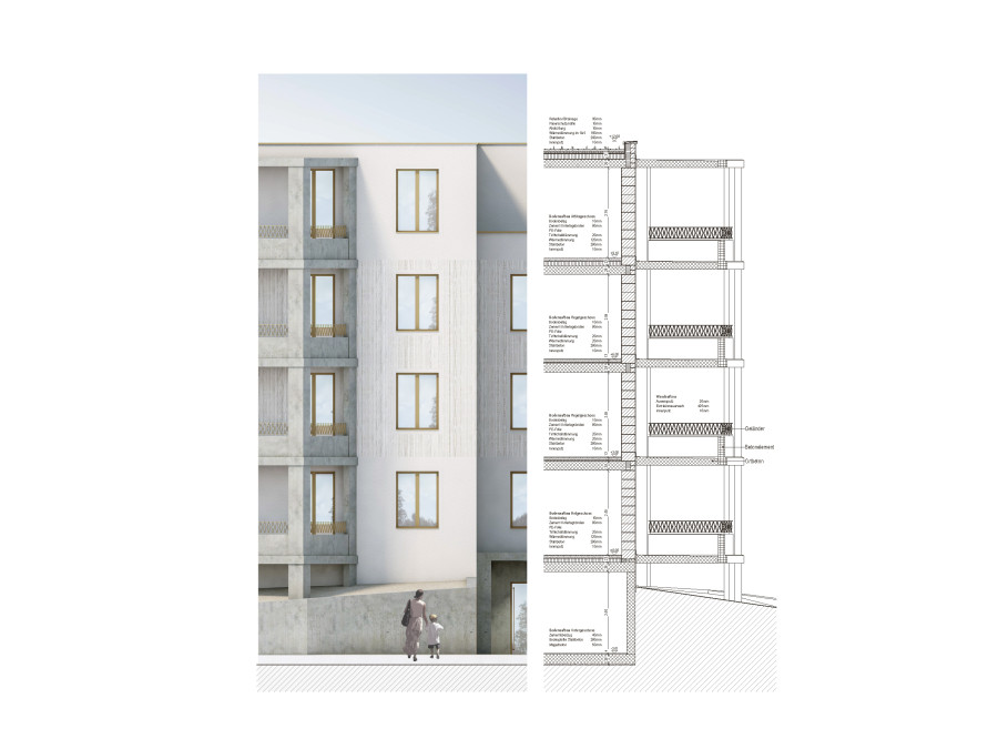 Gestalterisch entsteht kein spektakulärer Baukörper, sondern ein einfaches Volumen, das über präzise Einschnitte, Vorzonen und Balkone Tiefe erhält; diese „Additionen“ gliedern die Fassade, schaffen Adressierung und stärken den Bezug zwischen Innen- und Aussenraum, ohne die Grundform unnötig zu verkomplizieren. Die Grundrisse sind auf gute Belichtung, sinnvolle Raumfolgen und ökonomische Flächen ausgelegt, sodass verschiedene Wohnsituationen möglich werden.